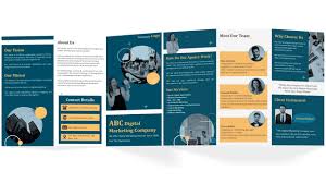 - Fold formats like trifold, z-fold, and gatefold allow sectioned content: your origin, services, values, and differentiators.